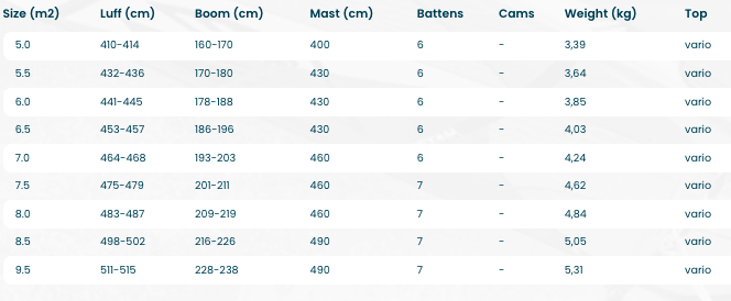 The Cheetah is a fast no-cam freeride sail that’s powerful, and easy to handle. It's made for sailors who want speed and control with simple rigging. It's exciting for experts and forgiving for intermediates. The windrange is massive which helps for a compact quiver.